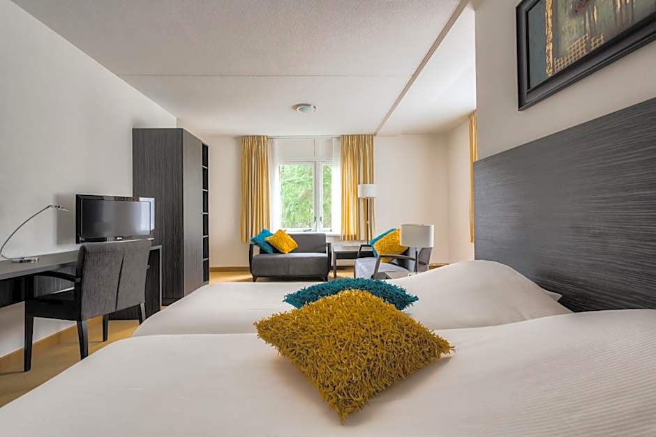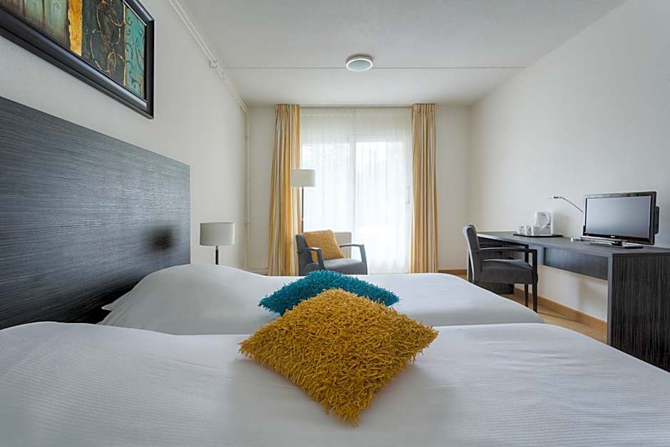 This Comfort Twin Room has a TV, 2 chairs and a desk. The bathroom is equipped with a walk-in shower. Please note that extra beds/baby cots are not possible in this room.